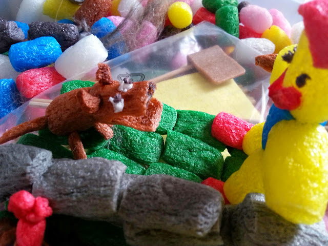 Através da querida amiga Luísa conhecemos esses bloquinhos feitos de fécula de batata, que se colam facilmente com uma esponja com pouca água. A filha da Luísa, a amiga L, é uma artista e cria objetos/animais/insectos inacreditáveis com eles. É inócuo e divertido. Facilmente, a AC conseguiu materializar os pedidos do irmão R e assim passaram uma boa tarde de brincadeira juntos.